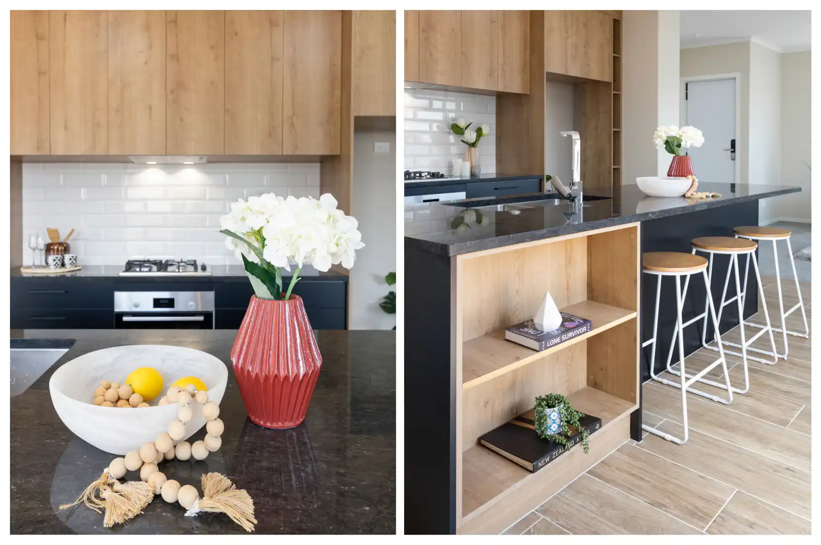 1. Contemporary open-plan kitchen with modern appliances including gas hob, electric oven, dishwasher and etc.