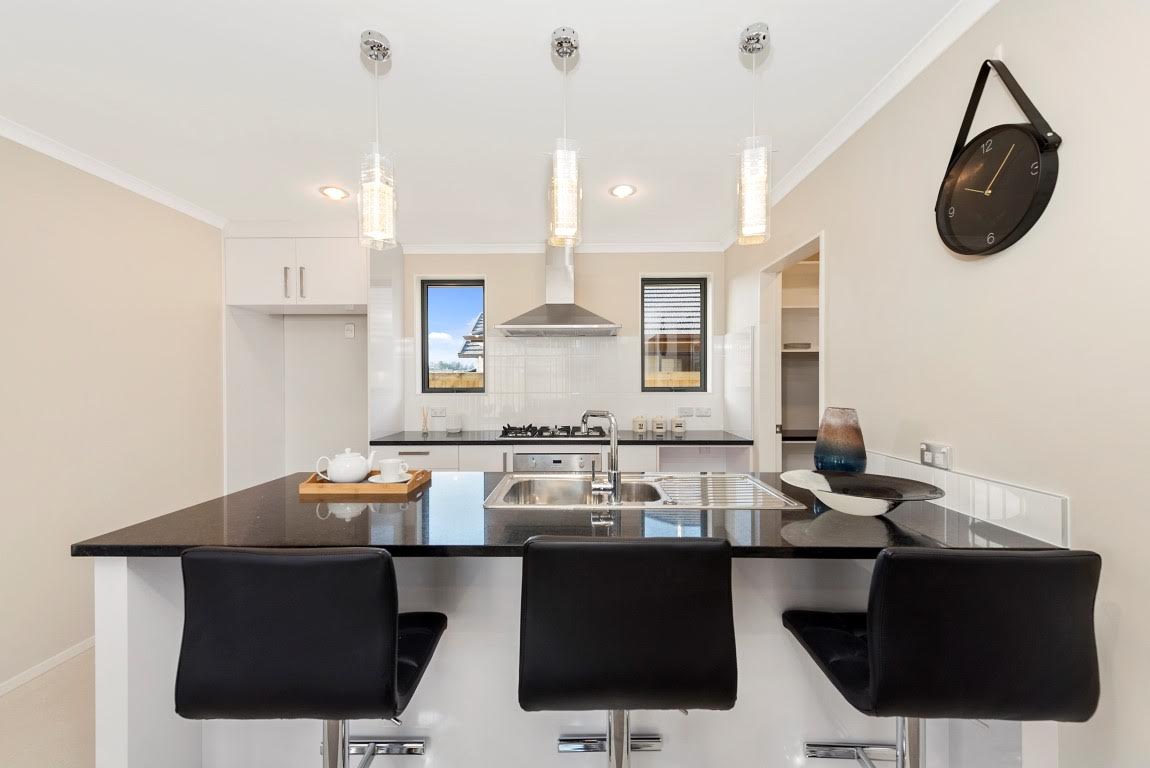 Contemporary open-plan kitchen with scullery, dishwasher, and rangehood